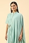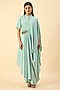 Featuring an aqua blue draped tunic in moss crepe base. It is paired with pants. Accentuate it with dangler earrings and heels for a festive occasion.