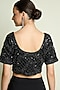 Featuring a black blouse in moss crepe base with crystal embroidery. Style it with a saree, zircon jewellery, heels and a clutch for a sangeet, cocktail or grand festive celebration.