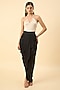 Featuring a black draped skirt in moss crepe. Accentuate it with a crop top, statement earrings and heels for an evening wear or cocktail party.