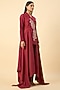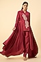 Crimson Red Cotton Silk Floral Embroidered Handkerchief Blazer Tunic Set
