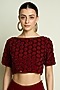 Featuring a maroon blouse in moss crepe base with crystal embroidery. Style it with a saree, zircon jewellery, heels and a clutch for a sangeet, cocktail or grand festive celebration.