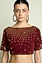 Featuring a maroon pre-draped skirt saree in moss crepe base. It is paired with a blouse having mirror embroidery. Accentuate it with zircon jewellery, heels and a clutch for a sangeet, cocktail or grand festive celebration.