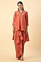 Featuring an orange tunic in cotton silk base with embroidery. It is paired with a skirt. Accentuate it with dangler earrings and heels for a festive occasion.