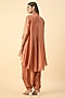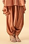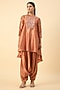 Featuring an orange tunic in matka silk base with embroidery. It is paired with pants. Accentuate it with dangler earrings and heels for a festive occasion.