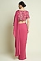 Featuring a pastel pink pre-draped saree in moss crepe base. It is paired with an embroidered blouse. Accentuate it with statement earrings and heels for sangeet ceremonies.