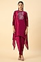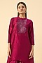 Featuring a pink tunic in matka silk base with embroidery. It is paired with pants. Accentuate it with dangler earrings and heels for a festive occasion.