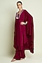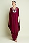 Featuring a ruby kaftan in silk crepe base. It is paired with pants. Accentuate it with dangle earrings and heels for festive gatherings.
