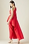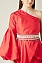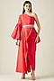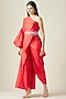Featuring a scarlet red one shoulder tunic in silk tissue base. It is paired with matching pants and a belt having pearl crystals.
