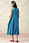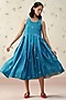 Deep Blue Handwoven Chanderi Hand Embroidered A-Line Dress