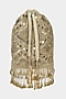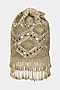 Featuring a gold bucket bag in velvet base with zardosi, crystal bead tassels, and mirror work. It has a detachable sling chain, a detachable handle, and a shantoon underlining.