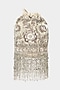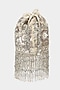 Featuring an ivory bucket bag in velvet base with cutdana, crystal bead tassels, gold, and silver embellishments. It has a detachable sling chain, a detachable handle, and a shantoon underlining.