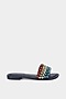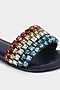 Featuring a pair of midnight blue sliders in faux leather base with crystal embellishments. It has leather underlining and a cushioned sole.