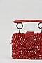 Featuring a red handbag in suede base with shimmery crystals, hand embroidery, and adjustable double chain handle. It has a suede lining.