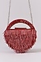 Featuring a red clutch in faux leather base with pipe work and cutdana embroidery. It has a suede lining. Perfect for both casual day or special occasions.