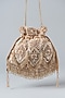 Featuring a tan potli bag in velvet base with sequins embroidery and crystal tassels. It has a shantoon lining. Accessorize this bucket bag with a simple outfit for a chic look.