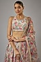 Featuring a beige lehenga in chanderi base with screen print and lace embroidery. It is paired with a blouse and an organza dupatta. Accentuate the designer lehenga set with statement earrings and heels for a wedding or an engagement ceremony.