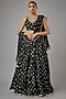 Featuring a black lehenga in muslin base with hand-tied jaipuri bandhej print and lace embroidery. It is paired with a blouse and a chiffon dupatta. Accentuate the designer lehenga set with statement earrings and heels for weddings.