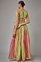 Featuring a green lehenga in chanderi base with screen print and lace embroidery. It is paired with a blouse and an organza dupatta. Accentuate the designer lehenga set with statement earrings and heels for a wedding or an engagement ceremony.
