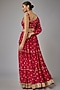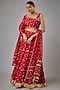 Featuring a maroon lehenga in muslin base with hand-tied jaipuri bandhej print and lace embroidery. It is paired with a blouse and a chiffon dupatta. Accentuate the designer lehenga set with statement earrings and heels for weddings.