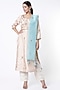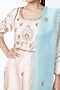 Featuring a nude kurta in silk base with zardosi hand embroidery. It is paired with contrasting white cotton pants and a powder blue organza dupatta