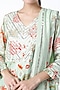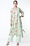 Featuring a sea green kurta in muslin base with gota embroidery and floral print. It is paired with matching cotton pants and a chiffon dupatta
