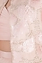 Featuring a pink bustier in raw silk base. It is paired with matching dhoti skirt in cotton satin base and encrusted jacket in net base having sequins embellishments.