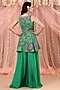 Featuring a jade green peplum top in korean georgette base with zardosi embroidery. It is paired with crepe silk gharara pants. Accentuate it with statement jewellery and heels for a wedding or mehendi ceremony.