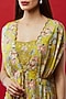 Featuring a lemon yellow bustier in crepe silk base with zardosi embroidery. It is paired with matching flared pants and floral printed cape in chinon crepe base.