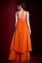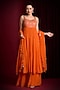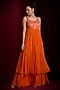 Featuring an orange anarkali in georgette base with hand embroidery. It is paired with crepe pants and a dupatta. Accentuate it with statement earrings, a clutch and high heels for a festive occasion, family gatherings or sangeet ceremony.