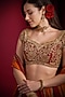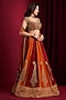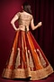 Featuring a red and orange lehenga in raw silk base with hand embroidery. It is paired with an embroidered blouse and a silk dupatta. Accentuate it with statement jewellery, an embellished potli bag and block heels for a wedding, sangeet or engagement ceremony.