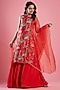 Featuring a red tunic in dolla silk and crepe silk base with print. It is paired with matching palazzo pants and an organza dupatta.