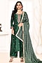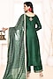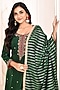 Abbaran presents an emerald green straight kurta in cotton silk base with hand embroidery. It is paired with palazzo pants and a banarasi organza strip dupatta. Accentuate with statement earrings and heels for festive occasions.