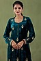 Featuring an emerald green straight kurta in silk velvet base with zardosi embroidery. It is paired with matching pants.