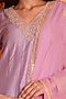 Featuring a lilac anarkali in chanderi base with dori embroidery. It is paired with cotton satin palazzo pants and a kota dupatta having lace detailing.