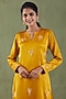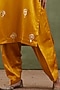 Featuring a mustard straight kurta in mashru base with foil print. It is paired with matching salwar pants.
