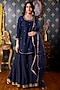 Featuring a navy blue kurta in cotton silk base with hand embroidery. It is paired with matching gharara pants and an organza lace embroidered dupatta.