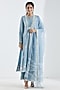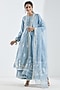 Featuring a powder blue anarkali in cotton silk base with foil hand block print. It is paired with matching palazzo pants and a kota dupatta having kingiri lace detailing.