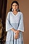 Featuring a powder blue long dress in khadi base with flared sleeves, print and lace work.