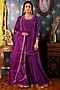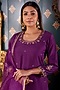 Featuring a purple kurta in cotton silk base with hand embroidery. It is paired with matching gharara pants and an organza lace embroidered dupatta. Perfect wear for festive occasions or wedding ceremonies.