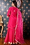 Featuring a rani kurta in cotton silk base with hand embroidery. It is paired with matching gharara pants and an organza lace embroidered dupatta. Perfect wear for festive occasions or wedding ceremonies.