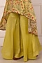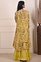 Featuring a yellow jacket in cotton silk base with lace details and digital print. It is paired with a matching mirror embroidered blouse and gharara pants.