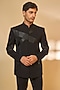 Featuring a black bandhgala in japanese rayon base with thread and cutdana embroidery. It is paired with trousers. Style it with shoes for a regal, traditional look, perfect for a cocktail, sangeet or engagement ceremony.