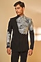 Featuring a black bandhgala in japanese rayon base with resham, thread and cutdana embroidery. It is paired with trousers. Style it with shoes for a regal, traditional look, perfect for a cocktail, sangeet or engagement ceremony.