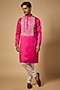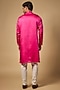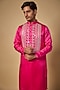 Featuring a magenta kurta in linen silk base with hand embroidery. It is paired with churidar. Style it with mojaris for a festive occasion, cultural event, wedding or engagement ceremony.