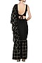 Featuring a black saree in blend base with ruffles, crystal piping and sequin work. It is paired with matching blouse.