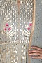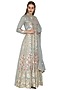 Featuring a grey front-slitted anarkali in georgette base with fuchsia resham work, lotus appliques, gota and mirror work embroidery. It is paired with a matching dupatta.