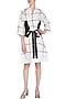 Featuring a white checkered dress in organic poplin base with raglan sleeves, two keyholes on collarbone, hand embroidered motifs and belt.