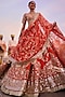 Featuring an amber lehenga in chanderi base with gota, zari and mirror floral motif embellishments. It is paired with an embellished blouse and an organza dupatta. Accentuate it with statement jewellery and heels for a wedding or engagement ceremony