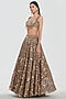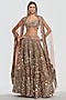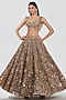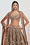 Abhinav Mishra presents a caramel rust lehenga crafted in net base with mirror, zari and glass beads work. It is paired with a blouse and a dupatta. Adorn this refined silhouette with diamond accents, dewy sculpted makeup and a graceful braided hair style for understated sangeet elegance.