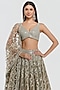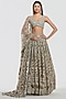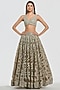 Abhinav Mishra presents a champagne gold lehenga crafted in net base with mirror, zari and gota work. It is paired with a blouse and a dupatta. Adorn this refined silhouette with heirloom polki accents, dewy sculpted makeup and a graceful braided hair style for understated sangeet elegance.